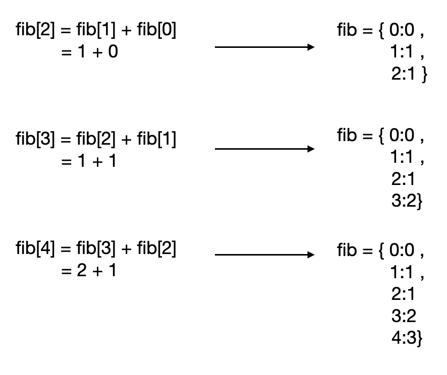 ์๋ฅผ ๋ค์ด fibonacci(3) ์ผ ๊ฒฝ์ฐ fibonacci(2) + fibonacci(1) == fibonacci(1) + fibonacci(0) + fibonacci(1) ์ด ๋๊ธฐ ๋๋ฌธ์, one = 2, zero = 1 ์ด ๋์ด, (1, 2) ๊ฐ ๋ฐํ๋๋ ๊ตฌ์กฐ์ด๋ค.