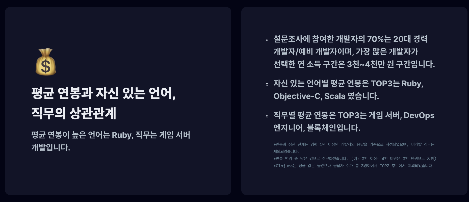 (์์ ์๋ ์ธ์ด๊ฐ ๊ณง ํ์ฌ ์ค๋ฌด์์ ์ฐ๊ณ ์๋ ์ธ์ด๋ผ๋ ๊ฐ์ ํ์ ๋ฐ์ดํฐ๋ฅผ ์ดํด๋ณด์)