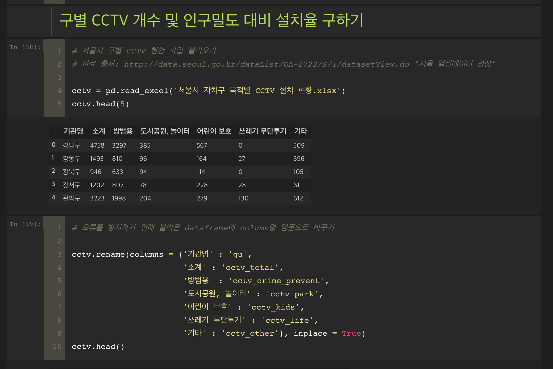 ์ฐ๋ฆฌ๊ฐ ์ต์ข ์ ์ผ๋ก ๋ง๋ ๋ฐ์ดํฐํ๋ ์์ ์ธ๋ฑ์ค์๋ ์์ธ์์ ๊ตฌ ์ด๋ฆ์ด, ๊ฐ ์ด์๋ ๊ตฌ๋ณ ๋ฉด์ /15์ธ๋ฏธ๋ง์ธ๊ตฌ/๊ตํต์ฌ๊ณ ๋ฐ์๊ฑด์/๊ตํต์ฌ๊ณ ๋ฐ์๋น์จ/์ด๋ฆฐ์ด๋ณดํธ๊ตฌ์ญ๊ฐ์/์ด๋ฆฐ์ด๋ณดํธ๊ตฌ์ญ๋น์จ/CCTV๊ฐ์/CCTV๋น์จ/์๋๋ฐฉ๋ฒCCTV๊ฐ์/์๋๋ฐฉ๋ฒCCTV๋น์จ/๊ณผ์๋ฐฉ์ง์นด๋ฉ๋ผ๊ฐ์/๊ณผ์๋ฐฉ์ง์นด๋ฉ๋ผ๋น์จ/์ด๋ฆฐ์ด์์ค๊ฐ์/์ด๋ฆฐ์ด์์ค๋น์จ ์ด์๋ค.