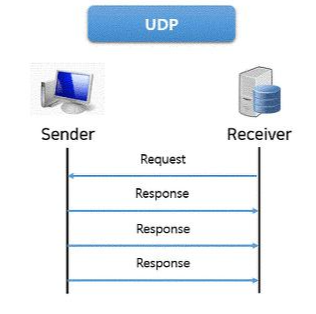 UDP μμλ ν΅μ μ ν립νκΈ° μν΄ ν΄λΌμ΄μΈνΈμμ μλ²μκ² λ¦¬μμ€ ν보λ₯Ό μν 첫 μμ²μ 보λΈλ€. νμ§λ§ μ΄ μμ²μ μλ²κ° ν΄λΌμ΄μΈνΈμκ² μλ΅μ 보λκ³Ό μ¦μμ μ μ€λλ©°, μ΄νμλ μλ²κ° ν΄λΌμ΄μΈνΈμκ² μΌλ°©μ μΌλ‘ λ°μ΄ν°λ₯Ό 보λ΄κ² λλ€.